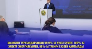 Читать далее »ШЫМКЕНТ ТҰРҒЫНДАРЫНЫҢ 99,9%-Ы АУЫЗ СУМЕН, 100%-Ы ЭЛЕКТР ЭНЕРГИЯСЫМЕН, 98%-Ы ТАБИҒИ ГАЗБЕН ҚАМТЫЛДЫ