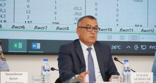 Келес ауданының әкімі, комиссия төрағасы Ақментай Есбаев жиынға төрағалық етіп, жүргізіп отырды.