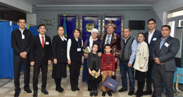 Избиратели, пришедшие с детьми на избирательные участки, получили подарки. Один из них — председатель совета ветеранов микрорайона «Мирас» Толеген Сапарулы. На избирательный участок №274, расположенный в школе имени А. Кунанбаева, аксакал приехал пораньше со своей супругой Улбалой и близнецами-внуками Айым и Бегым.
