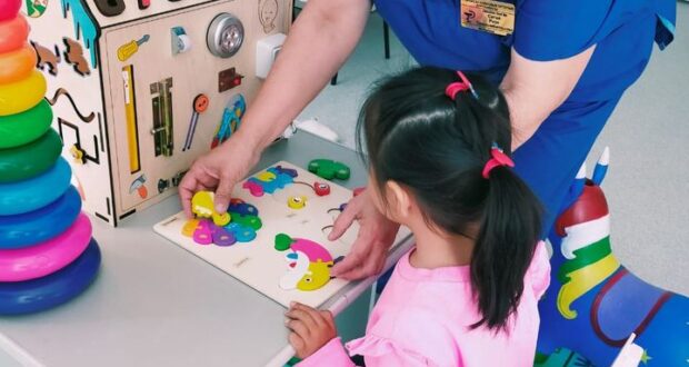 Баланы дамыту бөлмесінде анасына массаж және гимнастика жүргізуді үйрене алады, баланың жасын және даму ерекшеліктері бойынша ұсыныстар ала алады, жас балаларға ұсынылатын тағамдардың тізімімен, өнімдерді аспаздық өңдеу әдістерімен және т. б. таныса алады. Ерте жастағы балаларды патронаждық байқау және өткізу қағидалары перинатальды патронаж; даму мақсатында тамақтандыру (дені сау және науқас бала) және күтім бойынша ұсынымдар: «ана жадынамасы»; «ерте жастағы балаларды тамақтандыру» ұсыныстары; Қазақстан Республикасының профилактикалық егулерінің ұлттық күнтізбесі; азық-түлік пирамидасы; дені сау баланы және ауру кезінде тамақтандыру және күту бойынша ұсыныстар; ерте жастағы балаларға арналған массаж және гимнастика кешені; баланың ауруы кезіндегі «қауіп» белгілері және баланың дамуындағы қолайсыздық және т.б. Баланы дамыту бөлме жұмысындағы маңызды бөлімдердің бірі-емшек сүтімен емізу, кеңес беру және ананы сәтті емізу ережелеріне үйрету.