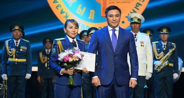 Затем на торжественном собрании ряд граждан, внёсших вклад в развитие страны, были награждены государственными медалями. Среди них — заведующий хирургическим отделением ГКП «Городская больница №2» Серик Жолдасов, учитель школы-лицея №23 имени З. Космодемьянской Шекербек Шахабаев, председатель маслихата города Шымкента Бахадыр Нарымбетов, депутат маслихата города Шымкента Талгат Балтабаев, заместитель акима Каратауского района Досалы Амангелдиев, председатель Шымкентского городского филиала партии AMANAT Мурат Жолдыхожаев. Также благодарственные письма от имени главы города получили прокурор отдела Департамента по городу Шымкенту Комитета по правовой статистике и специальным учётам Генеральной прокуратуры, юрист 2-го класса Куаныш Аманбаев, старший специалист Штаба Вооружённых сил, воинской части 10216 Айсулу Калдыбекова, руководитель финансово-хозяйственного отдела аппарата акима города Шымкента Гульмира Пернебаева, юрист Шымкентской городской клинической больницы №1 Руслан Шазадаев.
