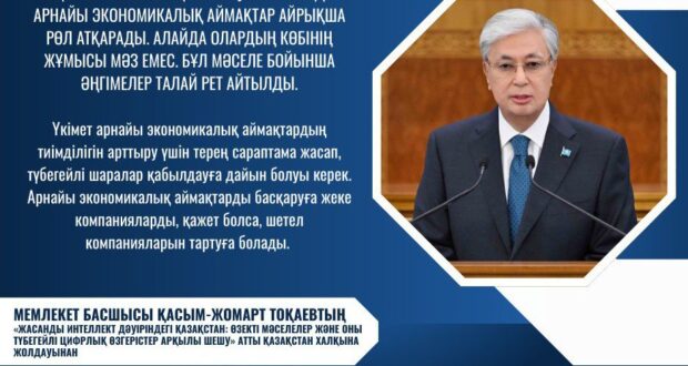 «Тағы бір мәселе. Өңірлерге инвестиция тарту барысында арнайы экономикалық аймақтар айрықша рөл атқарады. Алайда олардың көбінің жұмысы мәз емес. Бұл мәселе бойынша әңгімелер талай рет айтылды.
