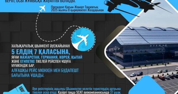 Енді шымкенттіктер мен қала қонақтары алыс және жақын шетелдерге тікелей Шымкент әуежайынан ұшуға мүмкіндік алады. Бұл жоба өңірдің көлік және туризм саласын дамытуға зор ықпал етеді.