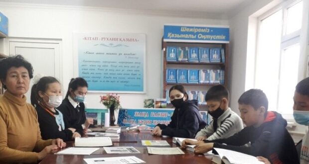 Кітапхана меңгерушісі Баймұханбетова Айжан айтулы тұлғаның өмірбаянымен таныстырды.