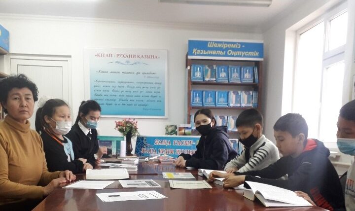 Кітапхана қызметкері Дәулетова Салима кітап көрмесімен таныстырды.