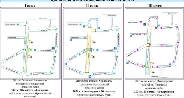 Ал негізгі жұмыстарды бастау үшін 4 МАМЫР-20 ТАМЫЗ Әйтеке би көшесі Бостандық, Амангелді көшелерінен Володарский көшесіне дейін көліктердің жол қозғалысы толығымен жабылады. Нысанды айналып өту мақсатында көліктердің қозғалысы Қабанбай батыр, Ерманов, Володарский, Бостандық және Өзбек көшелерімен ұйымдастырылатын болады.